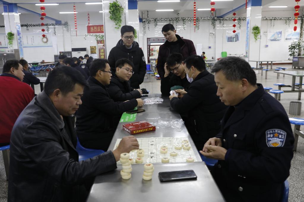 1月25日,在職工食堂職工們有的冥思苦想、有的在小聲探討,“這步棋下的好,我該怎么破解呢?”“我還剩一手炸和三個二,得小心點,看看能不能偷渡成功托底。”“想贏我可沒那么簡單,你在冥思苦想的時候,我都把下幾步棋怎么走都想好了……”斗智斗勇已悄然展開,活動現場笑聲不斷,氣氛火爆,年味十足。摜蛋、跳棋、象棋等比賽,吸引職工們駐足觀看,不由自主的爭相顯露一手,在豐富多彩、歡樂喜慶的氛圍中歡度大年初一。