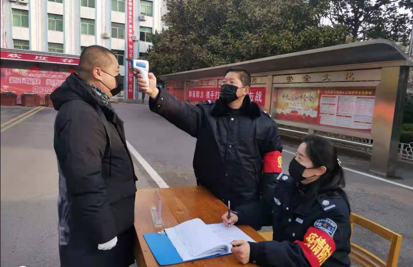 “您好,請(qǐng)停下車,配合測(cè)量體溫,進(jìn)行登記。”兩名武裝保衛(wèi)部執(zhí)勤人員嚴(yán)肅而又彬彬有禮地說道。接著,按照規(guī)定程序完成了疫情防控期間的各項(xiàng)排查工作流程。