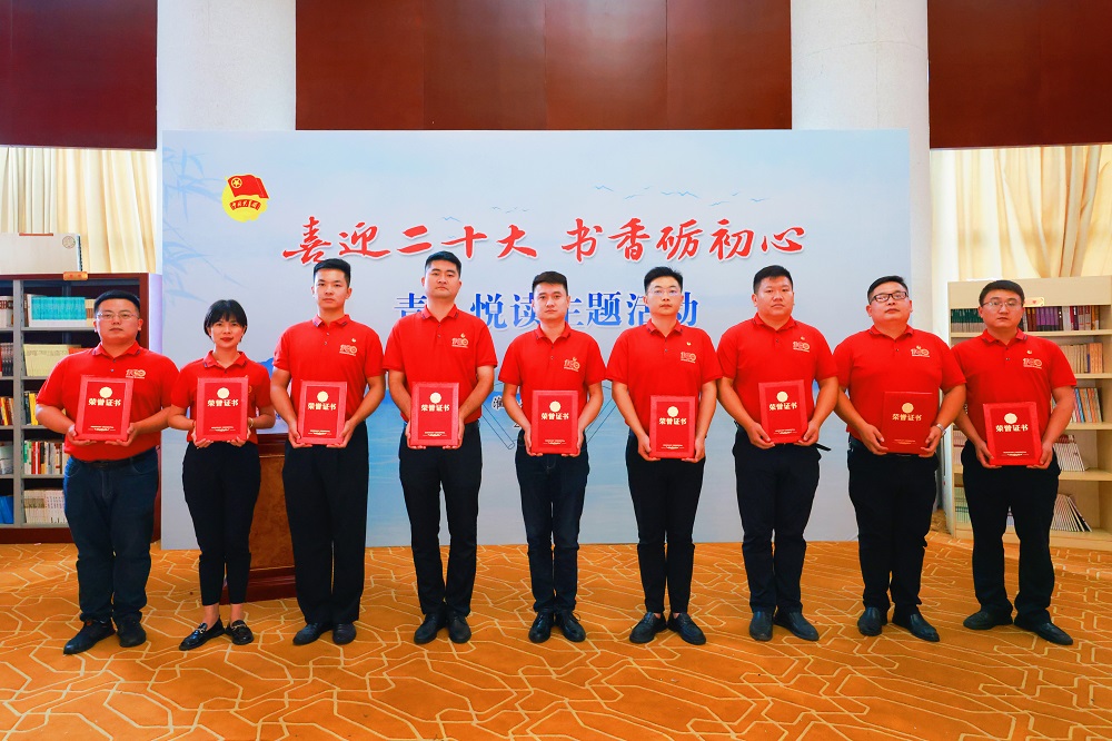 活動中,青年代表黃陳陳首先領(lǐng)學(xué)習(xí)近平總書記《論黨的青年工作》重要篇目—《廣大青年成長成才要勵志勤學(xué)、加強磨練》;3位青年代表依次上臺進行好書推薦,分享了個人讀書心得;4位青年代表共同誦讀了紅色經(jīng)典作品《紅船,從南湖起航》;現(xiàn)場宣讀了青年大學(xué)習(xí)“十百千萬”行動評選結(jié)果,向2021-2022年“青年大學(xué)習(xí)”優(yōu)秀組織單位及部分“學(xué)習(xí)標(biāo)兵”代表進行了頒獎,并贈送了《論黨的青年工作》書籍和讀書卡。