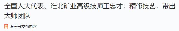 因?yàn)榧夹g(shù)出眾、工作出色,2017年,王忠才被評(píng)為淮北礦業(yè)集團(tuán)工匠大師。2021年,在中共安徽省委組織部、安徽省人力資源和社會(huì)保障廳正式公布的第二屆江淮杰出工匠名單中,王忠才榜上有名。