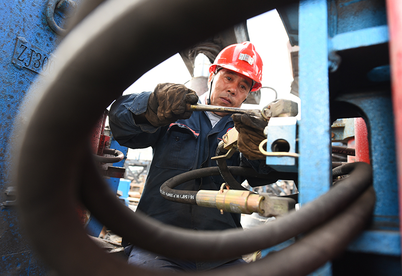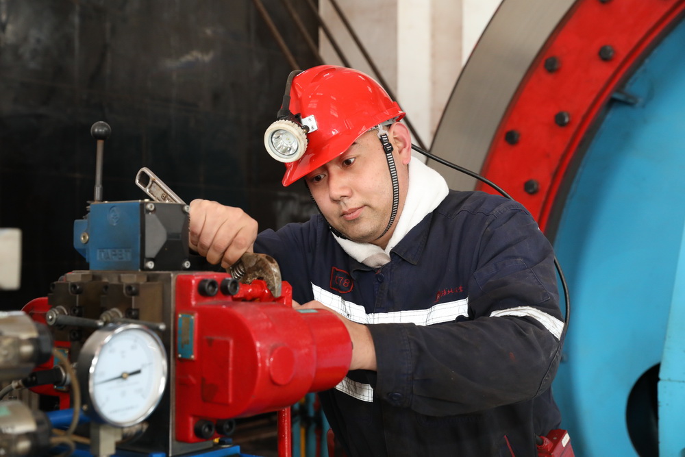 該礦保運區職工王飛進行提升液壓站日檢。