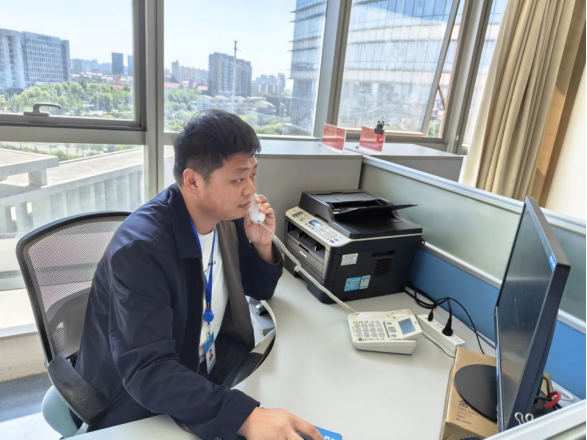 “叮鈴鈴......”“您好,我礦急需安全監控系統配件,請協助及時安排送貨”。接到電話后,采購部蘇英杰立即核查庫存,及時開出送貨單,并協調倉儲配送中心安排配送。隨后,又有礦廠詢問雨季“三防”物資采購進度,他都一一給予了解答。