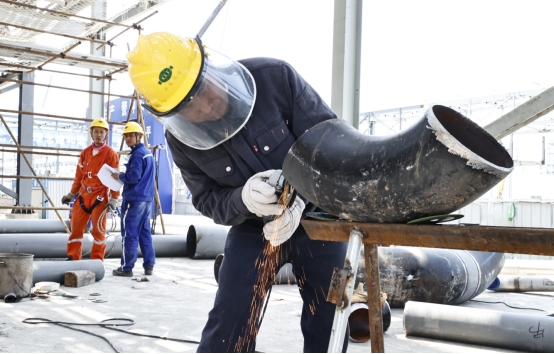 “十四五”專班PBAT項目一名工人在加工彎管。