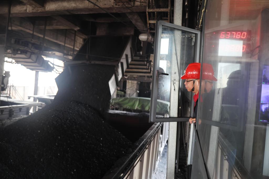 圖為該礦供應銷售部職工呂運賀正在監裝原煤外運裝車情況。