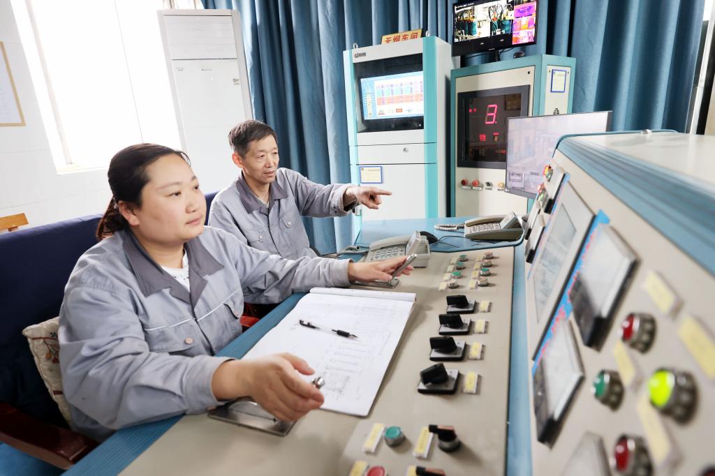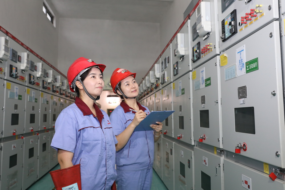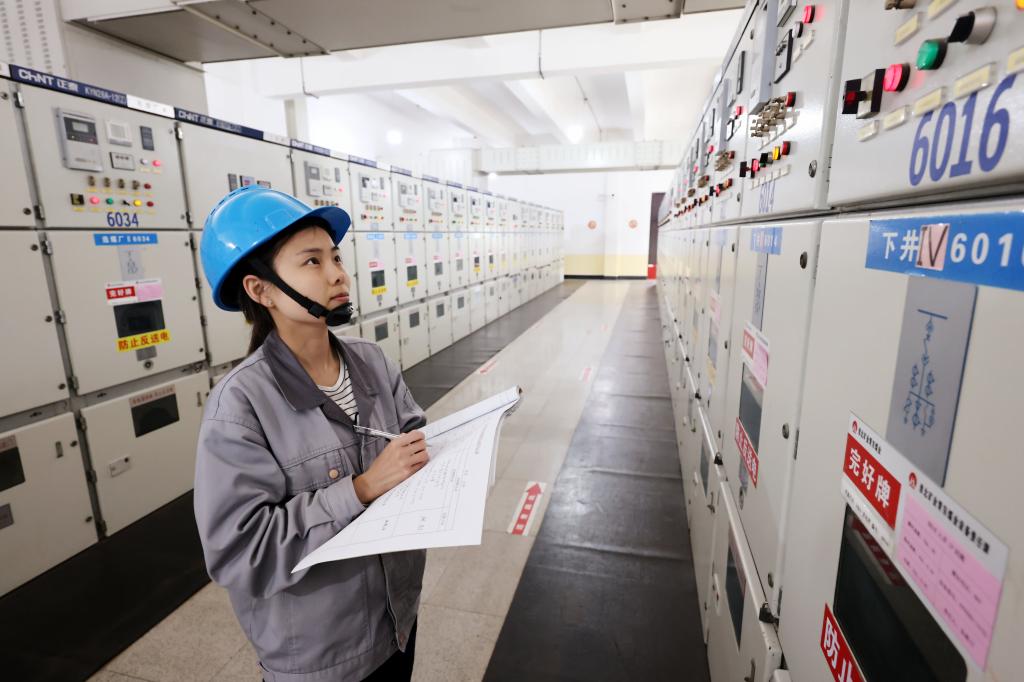 該礦保運區35KV變電女工謝妍妍、張海玲進行崗位操作。