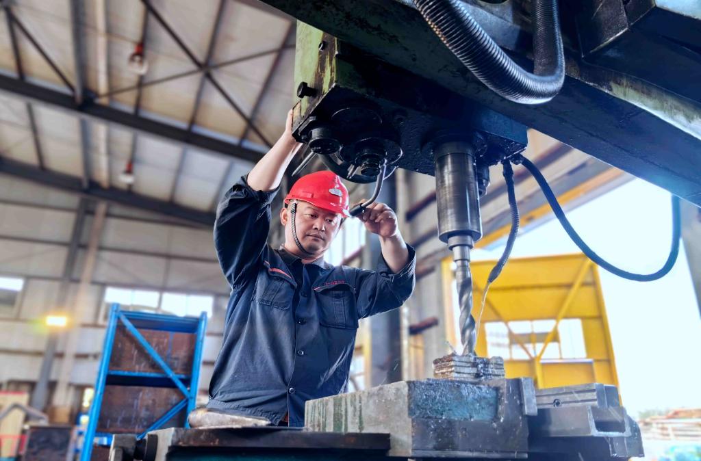 圖為機電科機修工魏東正在加工配件