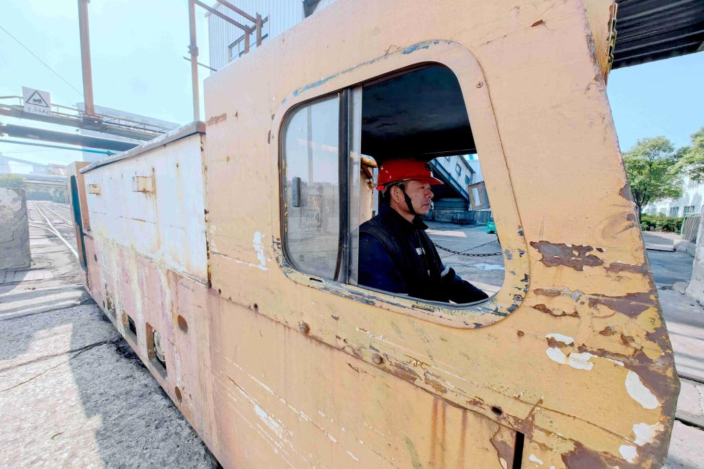 圖為運輸區電機車司機劉召正在拉運即將入井的物料