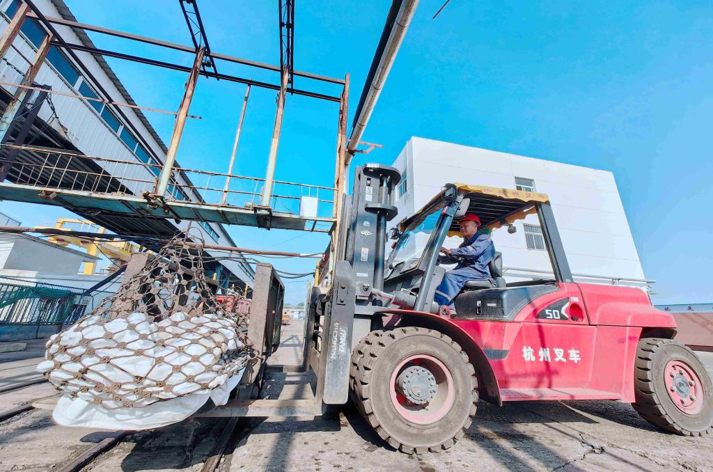 圖為運輸區叉車司機張振正在叉運物料