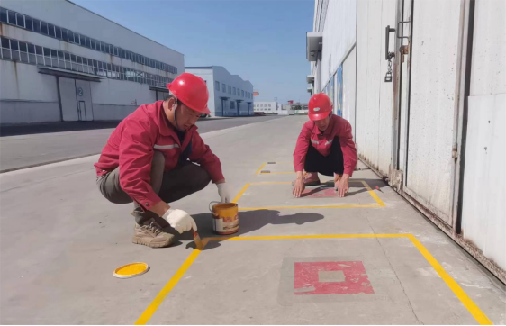 在AGV高架庫出入口,張勇、趙自衛正在忙碌著。“這是干什么呢”“返庫位、出貨位標志已經模糊,導致探頭識別力減弱,為了使標識更加規范鮮明,使貨位識別更加快速精準,我們要重新給予畫線。”只見他們互相配合,先用透明膠帶把黃線邊緣粘上,然后用黃色油漆刷新。