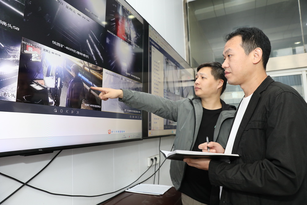 安監處安檢員林松、宋玉視頻篩查“三違”行為。