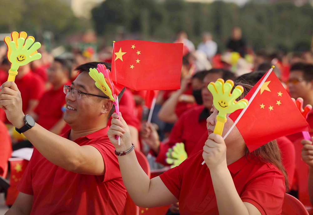 演出在舞蹈《鼓舞神州》中拉開序幕,隨后男女聲二重唱《新萬泉河水》、相聲《機智問答》、魔術《快樂十分》、京劇《武家坡》、小品《金錢與孝子》等節目輪番上演。一首首膾炙人口的歌曲,一段段婉轉悠揚的旋律,一支支優美多姿的舞蹈,讓現場觀眾沉浸在歡樂的氛圍中。臺上演員們全情投入,臺下觀眾積極互動,或跟唱歌曲,或打著節拍,現場氣氛融融。最后,演出在歌曲《奮斗吧追夢人》中圓滿落下帷幕。