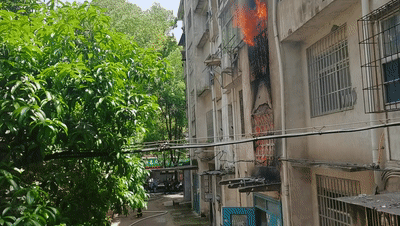 江西省新余市一小區(qū)樓梯間起火,多名群眾被困。